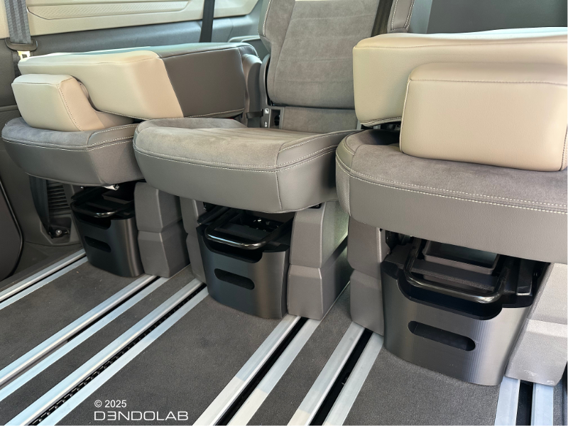 Schaffe zusätzlichen Stauraum unter den Rücksitzen deines T7 Multivan oder California. Die hochwertige Verarbeitung sorgt für eine ansprechende Optik, während sie praktischen Stauraum für deine Reiseutensilien bietet. Die Schublade lässt sich einfach installieren, und bleibt beim Ausbau des Sitze einfach am Sitz.